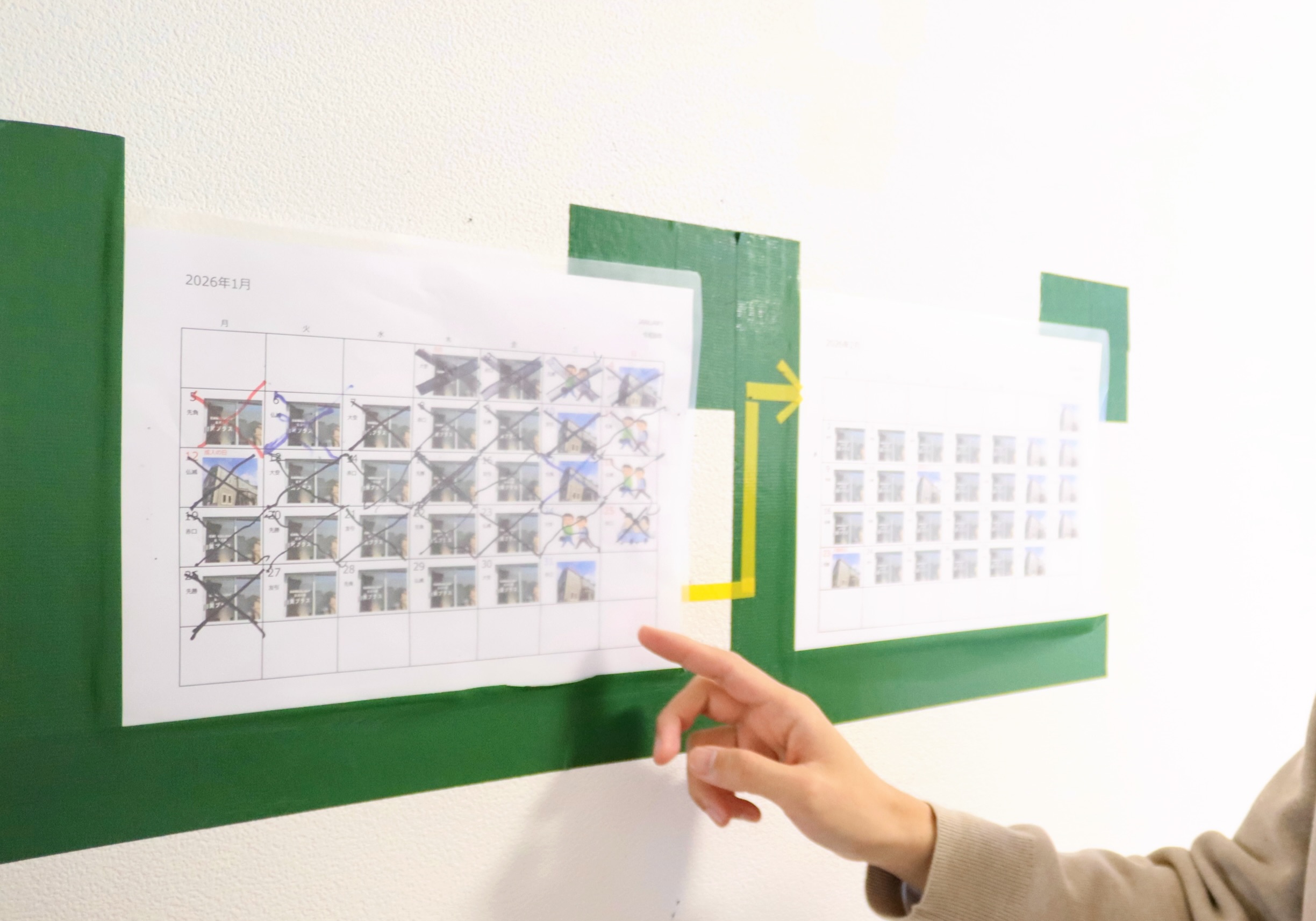そこで2か月分のカレンダーを作って、いつ移動支援があるか分かるようにしました。すると、「明日はあるのか?」と毎週気にしてしまう行動は、かなり減りました。前日は楽しみで寝られないこともありますが、それ以外の週の不安は減った感覚があります。