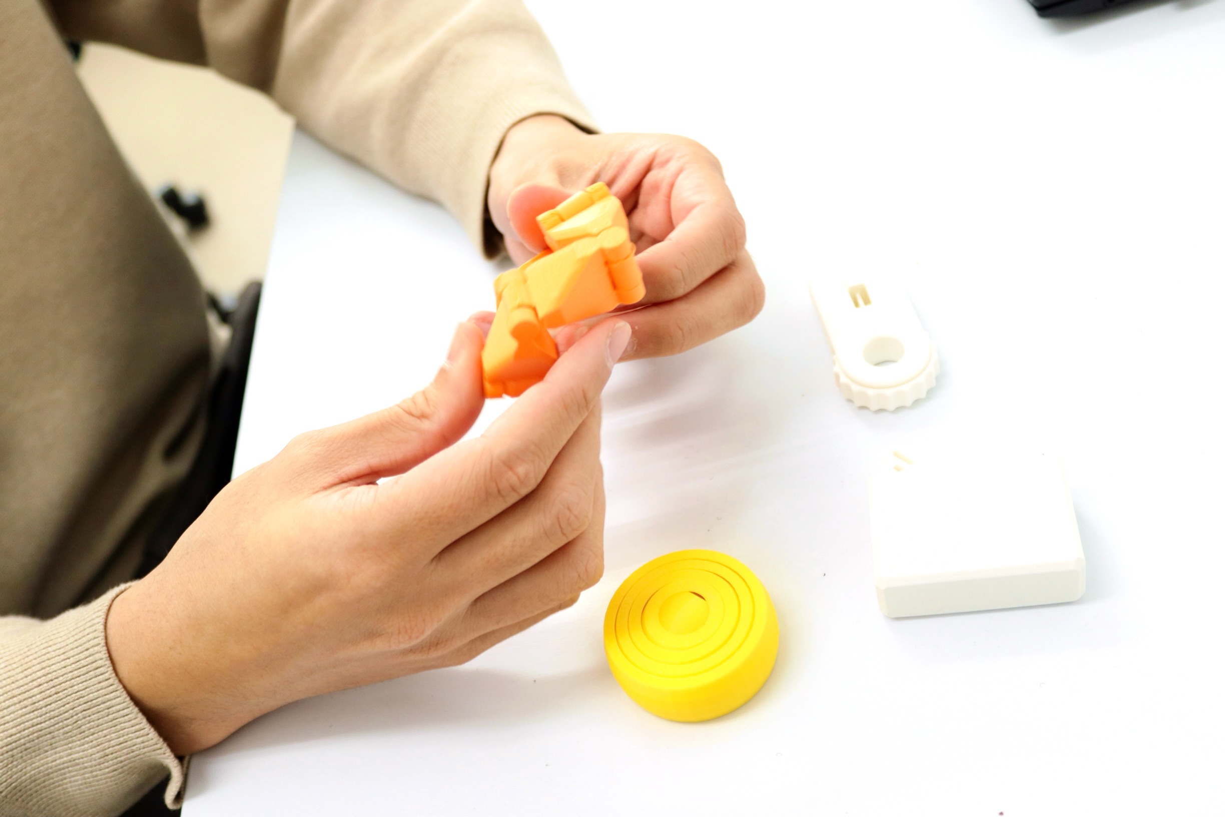 その中で「やってよかったな」と思えたのが、3Dプリンターでおもちゃを作って利用者様に渡し、余暇活動につなげたことです。海外で人気の指先で遊ぶおもちゃの設計資料がネットに上がっていて、それを印刷しただけなので、そんなにすごいことをしたわけではないんですけど(笑)。