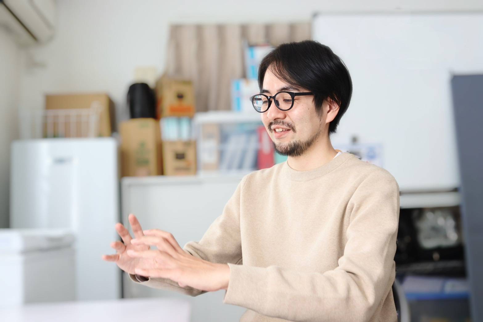 美大の学生のとき、知人に紹介されて、グループホームの夜勤の世話人のアルバイトを始めたのがきっかけです。僕は絵が得意で美大に入ったんですが、得意ではあっても、実は好きではありませんでした。就職もどうしようか悩んでいました。