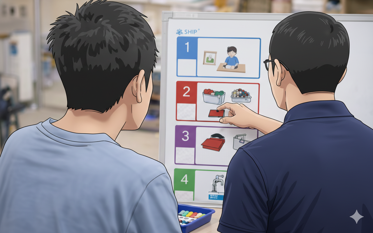 今から20年以上前に勤めていた職場でTEACCHプログラムを学んでいたので馴染みがあり、興味を持っていました。TEACCHをベースに支援を組み立てているというSHIPの事業所の方針を聞き、「ここは信頼できるところだな」と思えました。